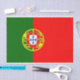 In diesem Design ist die Nationalflagge von Portugal zu sehen, einem Land, das sich vor allem auf der iberischen Halbinsel im Südwesten Europas befindet. Es ist der westlichste souveräne Staat auf dem europäischen Festland; er grenzt im Westen und Süden an den Atlantischen Ozean und im Norden und Osten an Spanien. Sein Gebiet umfasst auch die atlantischen Inselgruppen der Azoren und Madeiras, beide autonome Regionen mit ihren eigenen Regionalregierungen. Die offizielle und Landessprache Portugals ist Portugiesisch. Portugal ist der älteste Staat auf der iberischen Halbinsel und einer der ältesten in Europa. Die Hauptstadt und die größte Stadt Portugals ist Lissabon (Lissabon); einige andere Großstädte sind Porto (Porto), Braga, Vila Nova de Gaia, Amadora, Coimbra, Funchal, Setúbal, Almada, Agualva-Cacém, Queluz, Rio Tinto, Barreiro, Aveiro, Viseu, Odivelas, Leibesch Matosinhos, Guimarães und Faro.