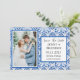 Portugiesische Fliesen, blau, weiß, gelb, mediterran, elegant, modern, romantisch, Foto, Save the Date Einladungen. Bitte personalisieren Sie es mit Ihren Daten.