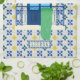 Portugiesische Fliesen und Fensterbalkon mit Vogel Geschirrtuch