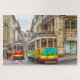 Die portugiesische Straßenbahnlinie ist ein malerisches Foto von zwei bunten Straßenbahnen, die durch die alten portugiesischen Straßen fahren. #portugal #tram #town #travel #holiday #european #culture #transport