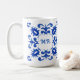 Elegant blue and white Portuguese ceramic tile featuring a central round medallion and simple round floral ornaments in each corner. Inspired by classic Lisbon tilework, this clean and timeless design is perfect for customization — ideal for names, dates, or meaningful phrases.