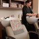 Refined Portuguese-inspired hair icons—scissors, combs, dryers, and hearts—on warm taupe with soft coral accents. The lower band is fully customizable with your stylist or salon name, keeping backbar, restroom, or reception areas neatly on-brand. A cheerful, professional accent that coordinates with matching aprons, planners, doormats, and stationery from the same design family—ideal for salons, barbers, and spas.