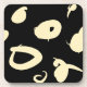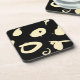 Dieser moderne, akrilische Untersetzer ist mit weißgelben Flecken und grafischen Gesten auf einem schlichten schwarzen Hintergrund gestaltet.