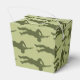 Gemusterte Geschenkpackung, die Erwachsenen genauso viel Spaß macht wie Kindern, mit dem symbolträchtigen, grünen Armeemann aus Plastik, der auf koordiniertem grünem Hintergrund in der Pose der Scharfschützen sitzt