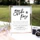 Wenn Sie auf Ihrer Hochzeitsfeier oder Ihrer Verlobungsfeier einen Foto- oder Foto-Stand planen, ist dieses Schild für Sie! Legen Sie es neben Ihre Requisiten, damit die Gäste wissen, was zu tun ist. Modernes und elegantes Design in Schwarz-Weiß-Schrift "trifft eine Pose" in handgeschriebenem Schriftzeichen mit ein paar Rhymlinien, um Ihre Gäste zu lenken. Personalisieren Sie mit Ihren Namen und Hochzeitstag, und fügen Sie eine optionale Hochzeit Hashtag für Gäste zu teilen auf sozialen Medien.