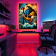 Diese kubistische minimalistische Vision von Poseidon, Gott des Meeres und Stürme, beherrscht die Wellen mit seiner mächtigen dreißig und elektrischen Energie. Umgeben von turbulentem Wasser und göttlichem Blitz verkörpert er Power, Rätsel und ozeanische Majestät. Eine auffallende Fusion griechischer Mythologie und kubistischer Kunst, die perfekt für Sammler geeignet ist, die die Götter der Liebe in der modernen Kunst neu erfunden haben.