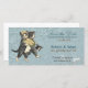 Spaß, anpassbares Save the Date Design. Die süße Vintage Braukatze hält einen weißen rosa Hochzeitsbukett und die Groom-Katze spielt neben ihr mit seinem schwarzen Top-Hut. Aqua blauer Hintergrund mit Blumen. Passen Sie Ihren Namen und Ihren Hochzeitstundentext an.