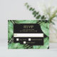 Die RSVP-Karte für Hochzeitsfeiern ist mit üppigen tropischen Blätter und Palmenfronten ausgestattet, die einen rechteckigen Rahmen mit einem schwarzen Rahmen umgeben, der den UAWG enthält. Es ist eine fantastische Wahl für eine Hochzeit am Strand, Hochzeit in Urlaubsort, Hochzeit oder Hochzeit mit einem tropischen Thema. Personalisieren Sie das UAWG mit dem gewünschten Antwortdatum.