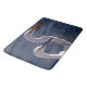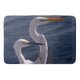 Diese Badematte ist ein Originalfoto von ZoeSPEAK von zwei weißen, langen, hektarierten Ufervögeln, die sich durch das tiefblaue Wasser des Ozeans bilden. Der Vogel mit dem langen, spitzen schwarzen Schnabel ist ein schneesicheres Eret. Der Vogel mit dem langen, spitz-gelben orangefarbenen Schnabel ist ein großartiges Ego.