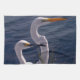 Dieses Küchentuch zeigt ein Originalfoto von ZoeSPEAK von zwei weißen, langen, hektarierten Ufervögeln, die sich am tiefblauen Wasser des Golfs von Mexiko posieren. Der Vogel mit dem langen, spitzen schwarzen Schnabel ist ein schneesicheres Eret. Der Vogel mit dem langen, spitz-gelben orangefarbenen Schnabel ist ein großartiges Ego.