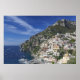 Die wunderschöne Amalfiküste Italiens ist durch die Stadt Positano charakterisiert, die zwischen dem Berg und dem Meer gezeigt wird.
