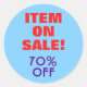 Dieser runde Aufkleber enthält die Meldungen "POSITION AUF VERKAUF!" und "70% OFF". Es könnte in einem Einzelhandelsgeschäft verwendet werden, um Waren zu kennzeichnen, die zum Verkauf angeboten werden. Der Rabattbetrag kann personalisiert sein.