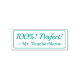 Diese ermutigende Gummi-Briefmarke-Design zeigt die ermutigende Rückmeldung "100%! Perfekt!" und ein individueller Pädagoge-Name. Es könnte von einem Lehrer, Erzieher, Ausbilder oder Tutor genutzt werden, um anzuerkennen, dass ein Student eine außergewöhnliche Arbeit geleistet hat.