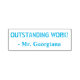 This motivating rubber stamp design feature the motivational message "OUTSTANDING WORK!" and a custom educator name. It could be used by a teacher, educator, or tutor when grading student work, to acknowledge that a student has,