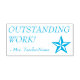 Dieses inspirierend Design der Gummi-Briefmarke beinhaltet die inspirierend Meldung "AUSSTEHENDE ARBEIT!" und den Namen eines angepassten Lehrers. Es verfügt auch über ein dekoratives Sternensymbol. Es könnte von einem Lehrer, Pädagogen oder Tutor verwendet werden, um anzuzeigen, dass ein Schüler gut abgeschnitten hat.