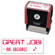 Dieses lustige Design aus Gummi Briefmarke beinhaltet die Nachricht "GREAT JOB!" und den Namen eines personalisierten Pädagogen. Es gibt auch eine dekorative musikalische Note. Es könnte von einem Lehrer oder Erzieher bei der Bewertung der Arbeit eines Schülers genutzt werden, um anzuerkennen, dass ein Schüler eine außergewöhnliche Arbeit geleistet hat.