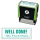 Dieses ermutigende Design der Gummi Briefmarke beinhaltet die Botschaft "GUT DONE!" und den Namen eines personalisierten Lehrers. Es könnte von einem Lehrer oder Erzieher verwendet werden, wenn sie Aufgaben markieren, um anzuerkennen, dass der Schüler gut abgeschnitten hat.