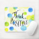 Moderne Kalligrafie inspirierendes Zitat - positiv denken - auf blauem und grünem Wasserfarbenhintergrund| Bigstock® - Alle Rechte vorbehalten.