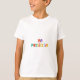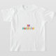 Ein lebhafter, farbenfroher T - Shirt mit dem Begriff "Sei positiv" in fett gedruckten, spielerischen Buchstaben. Jeder Buchstabe ist eine andere Farbe, die ein lustiges und energiegeladenes Design schafft. Das Gesamtgefühl des Shirts ist erfreulich und optimistisch, perfekt für die Verbreitung von Positivität und die Förderung eines positiven Lebensausblicks.