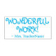 Dieses lustige Design aus Gummi-Briefmarke beinhaltet die motivierend Nachricht "WONDERFUL WORK!" und den Namen eines speziell angepassten Pädagogen. Es könnte von einem Lehrer, Pädagogen oder Tutor verwendet werden, um zu zeigen, dass der Schüler eine großartige Arbeit geleistet hat.