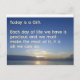 Heute ist ein Geschenk. Ein positives inspirierendes Zitat aus der Postkarte von GriefandSympathy. Schicken Sie eine motivierend und lebendig inspirierend Karte, um Ihren Lieben zu helfen und ihren Tag zu heitern.