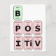 Ein lustiges Design zu fördern, positiv zu denken, und eine gute Einstellung. Das Zitat "Sei positiv" wird auf Karten, die Elemente darstellen, aus dem Periodensystem geschrieben.