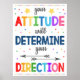 IHRE ATTITUDE WIRD IHRE RICHTUNG FESTLEGEN! Lassen Sie sich mit diesem durchdachten und trendigen Imitat-Chalkboard Typografy Poster nachdenken. Ein stilvolles und großartiges Klassenzimmer, ein Hauptbüro, ein Sozialbüro oder ein Beraterposter, um die Schüler zu einer positiven Einstellung zu bewegen! Ein großartiges Poster, um in einer Mittelschule, einem Schulunterricht oder einem Schulbüro jeder Art zu hängen! Ein hervorragendes Plakat für Schulberatungsbüros, Karriereberatungsbüros, Hauptbüros, Therapeuten oder Psychologen, um die Kinder an eine positive Einstellung zu erinnern!