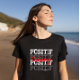 Das T-shirt besteht aus 100% Baumwolle und fühlt sich toll an. Der Druck ist sehr gelungen.
