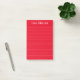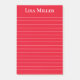 Dieser große Post it note pad wird in einer roten Farbe mit weißen Linien angezeigt. Hat ein Beispiel für einen individuelle Name, passen Sie dieses Element an und ändern Sie den Beispielnamen in Ihren.