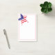 Post-it-Note in einer weißen Farbe mit patriotischen USA Flag Star Printdesign gezeigt. Die Größe wird angezeigt. Passen Sie dieses Objekt an oder kaufen Sie, wie es ist. Bild