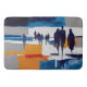 Loose, confident brushstrokes and geometric color fields give the piece a modern, painterly structure. The figures appear anonymous and universal, emphasizing shared experience rather than individuality. There is a sense of transition in the scene—between weather and calm, movement and pause—making the artwork emotionally resonant and quietly powerful.