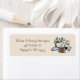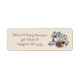 Mailbox entwarf ein mageres Adressetikett mit drei Zeilen gedrucktem schwarzen Text. Ein offener Briefkasten mit Briefen im Inneren und eine knisternde Weinrebe mit blauen Blumen ist das in Stift und Bleistift gezeichnet Kunstwerk.
