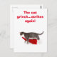 Postcard Humor Katze schleppt Weihnachtsmütze weg Postkarte