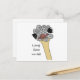This postcard features a hand-drawn doodle of a curious ostrich emerging from a cloud of simple circles. The playful illustration pairs naturally with the message “Long time no see”, turning a familiar phrase into a warm, visual greeting.