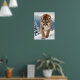 Poster wird mit einem Foto von einem wunderschönen Berglöwe in den schneebedeckten Bergen gezeigt. Passen Sie dieses Objekt an oder kaufen Sie, wie es ist. Lizenziertes Bild