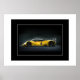 Poster mit einem Foto von einem schlanken Sportwagen. Im Value Matte Poster Papier gezeigt, aber Sie können Upgrade & anpassen. Anpassen oder kaufen, wie gezeigt. Börsenbild freepik.com