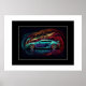 Poster mit einem Foto von einem schlanken Sportwagen. Im Value Matte Poster Papier gezeigt, aber Sie können Upgrade & anpassen. Anpassen oder kaufen, wie gezeigt. Börsenbild freepik.com
