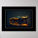 Poster mit einem Foto von einem schlanken Sportwagen. Im Value Matte Poster Papier gezeigt, aber Sie können Upgrade & anpassen. Anpassen oder kaufen, wie gezeigt. Börsenbild freepik.com