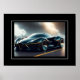 Poster mit einem Foto von einem schlanken Sportwagen. Im Value Matte Poster Papier gezeigt, aber Sie können Upgrade & anpassen. Anpassen oder kaufen, wie gezeigt. Börsenbild freepik.com