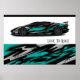 Poster mit einem Foto-Druck eines schlanken Rennsportwagens. Im Value Matte Poster Papier gezeigt, aber Sie können Upgrade & anpassen. Anpassen oder kaufen, wie gezeigt. Börsenbild freepik.com