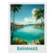 Tropical illustration of the Bahamas highlighting a turquoise cove surrounded by palm trees and rocks under a bright sky. Ein perfektes Poster für Sunny and paradise-inspirred wall decor.