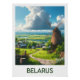Countryside illustriert Belarus Showing a rural Village with wooden houses, flower-lined path und an old windmill against a backdrop of green farmland. An authentic poster for rustic and peaceful wall decor.
