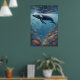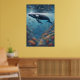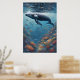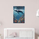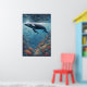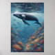 Ein künstlerisches HD-Porträtposter, das einen Buckelwal illustriert, der von anderen Meereslebewesen begleitet wird