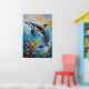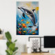 Ein künstlerisches Ölgemälde im HD-Poster-Stil, das ein Delphin darstellt, das mitten im Meer schwimmt