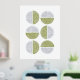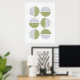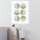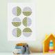 Dieser moderne Kunstdruck weist eine Reihe von Kreisen auf, die in zwei Hälften geteilt sind und durch kurvilineare und gerade Linien aufgeteilt sind. Die solide Hälfte jedes Kreises ist eine lebendige grüne Farbe, während die andere Hälfte in Gold oder Silberfolie gepresst wird. Dieses Design ist vielseitig genug, um mit verschiedenen Dekorstilen zu arbeiten, aber ich denke, es würde in einem Büro oder Loft gut aussehen.
