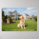 Poster eines Golden Retriever im Garten mit einem Herrenhaus im Hintergrund mit dem Zitat: "Manchmal fantasiere ich, ein Goldener Retriever in einer Familie der gehobenen Klasse zu sein!"