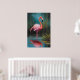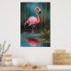 Ein HD-Portrait Ölgemälde-Poster, das ein Exemplar eines Flamingo auf dem Wasser eines Sees darstellt