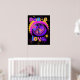 Gönnen Sie sich Ruhe und Liebe und genießen Sie die hellen, warmen Farbtöne gleichzeitig mit unserem Plakat für Ruhe und Liebe mit einem Friedenssymbol, Blume und vielen hellen Farbtönen auf schwarzem Hintergrund!