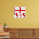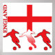 Drei Fußballspieler spielen vor der englischen Flagge. Der Name England ist auf der Seite