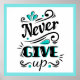 Dieses Poster hat einen weißen Hintergrund mit Aqua-blauen Akzenten und grenzt an schwarzen Text. Text liest "nie aufgeben" mit Filigrees. Passen Sie dieses Objekt an oder kaufen Sie es wie geplant. Archivbild www.freepik.com
